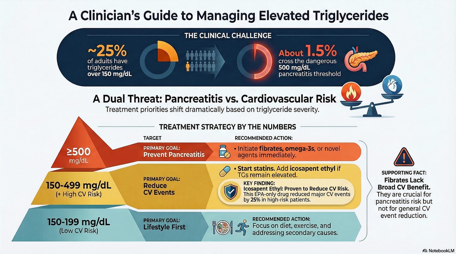 A focused update gives recommendations, not patient-level guarantees—so the bedside reality is still selection, adherence, and cost, plus the uncomfortable truth that triglycerides often track with metabolic health you can’t fix with a prescription alone.